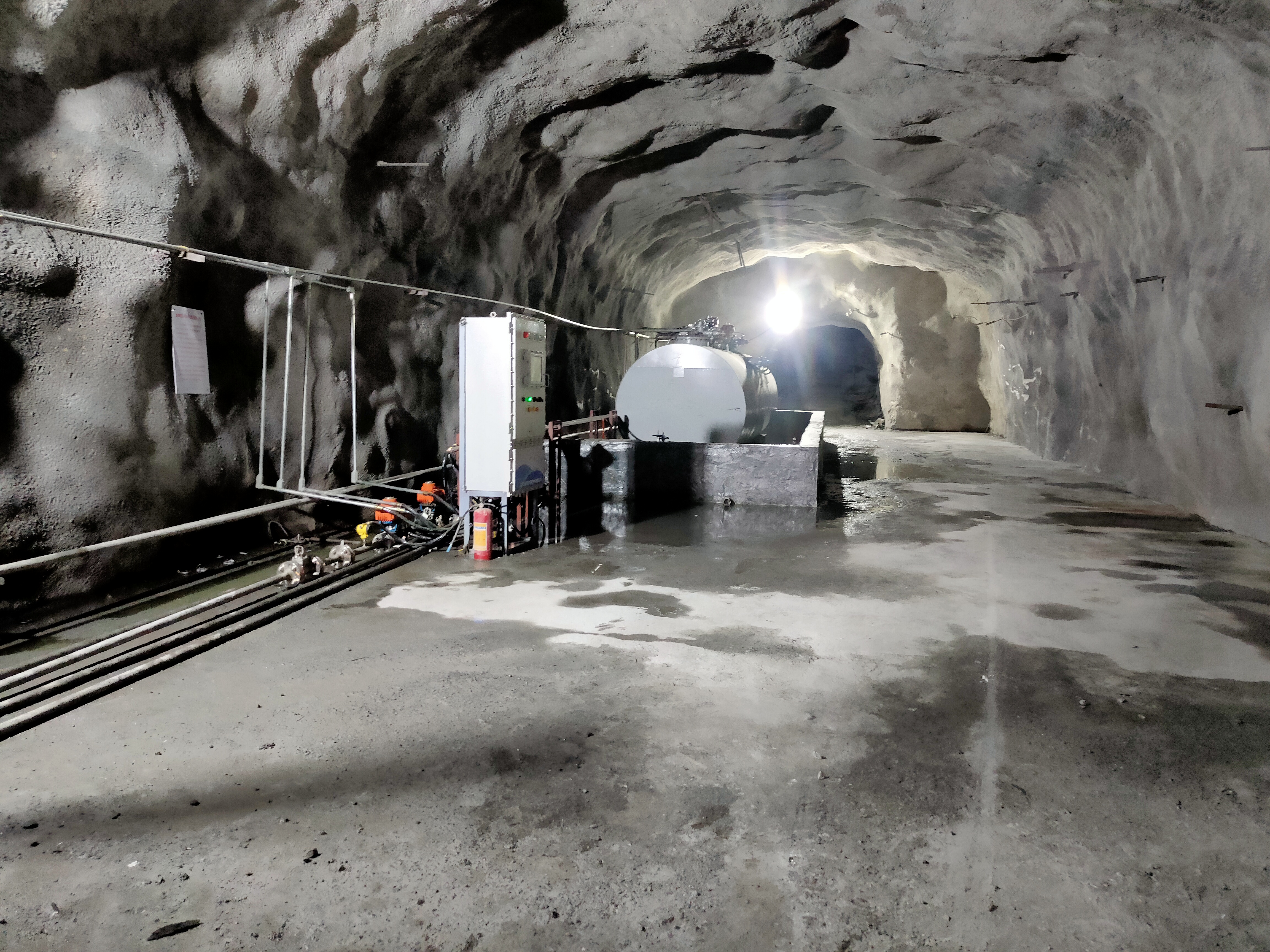 凡口鉛鋅礦井下680米智能供油系統(tǒng) 目前正有序施工中, 預(yù)計9月底完工并投入使用。該項目為全國首創(chuàng), 由韶關(guān)企業(yè)進行技術(shù)攻堅 并申請多項國家專利, 擬申報吉尼斯世界紀(jì)錄 “全球最深的智能供油系統(tǒng)”。 凡口鉛鋅礦井下智能供油系統(tǒng) 需在地面設(shè)置橇裝加油裝置, 并分別在地下 330米、480米和680米處 建設(shè)智能化供油系統(tǒng), 通過鉆孔鋪設(shè)輸油管線, 將油品從地面輸送到井下。 地下330米智能加油點, 目前已進入收尾階段, 現(xiàn)場有兩根 從地面裝置接下來的輸油管, 用于工程車加油, 另一邊也有兩根輸油管輸送到 地下480米和680米的智能加油點。 別看油管很細(xì),鉆孔不大, 但施工難度并不小, 全長3千多米的輸油管, 垂直打孔偏差不能超過1米。 作為亞洲最大的 單體鉛鋅銀礦生產(chǎn)基地, 凡口鉛鋅礦 有井下工程車輛和設(shè)備100多臺, 井下用油量大。 井下智能化供油系統(tǒng)啟用后, 不僅解決井下用油安全、環(huán)保風(fēng)險, 同時降低生產(chǎn)用油成本, 推進凡口鉛鋅礦建設(shè)智能化礦山, 實現(xiàn)“無人開采”。 如果鉆孔偏差太大,就找不到鉆下來的孔,影響輸油管道的布設(shè),增大成本。3千多米有5千多個焊接點,所有的焊接口都要達到高壓管道的焊接要求,這個項目是全國首創(chuàng),在全國所有礦山企業(yè)中,我們是首次使用通過輸油管道往井下輸油,并且實現(xiàn)智能控制的方案。 這個月底把地下330米加油點完工,開始加油,9月底把底下480米和680米開通使用。希望通過這個項目打造創(chuàng)新科技的韶關(guān)樣板,把先進的經(jīng)驗和技術(shù)推廣到全省、全國乃至全球。